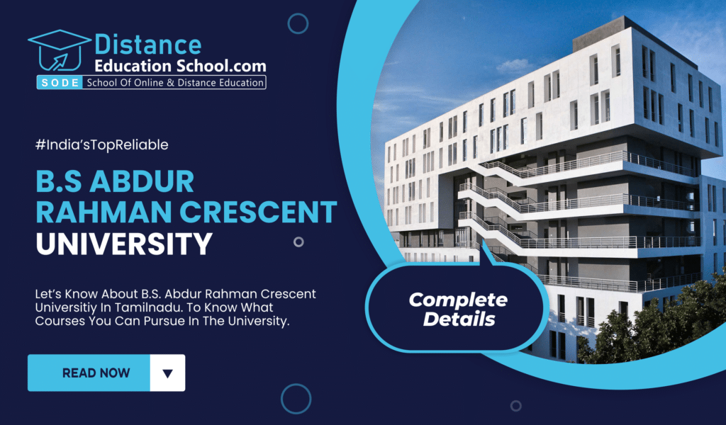 BS Abdur Rehman University B.S. Abdur Rahman Crescent Institute of Science and Technology is a top UGC-approved, NAAC A+ private